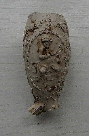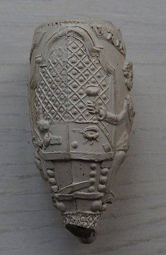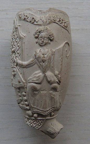 Fragment van kleipijp (SS17) met de voorstelling van een mannelijke pijpenmaker en vrouwelijke