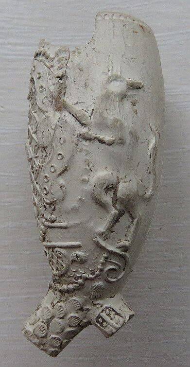 Opmerking: Mogelijk is dit het heraldische paard van Hannover en was deze pijp bedoeld voor de export naar Nedersaksen. Bron: Pijp van de maand augustus 2014