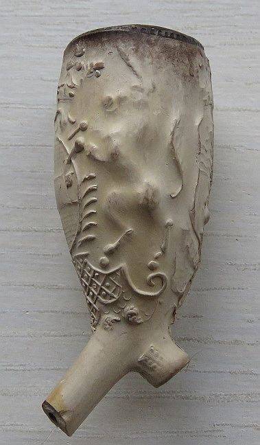 Het ovaal wordt vastgehouden door een leeuw en een eenhoorn. De (Goudse) maker van de pijp is niet bekend.
