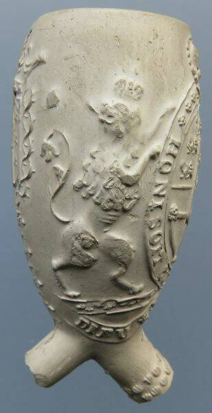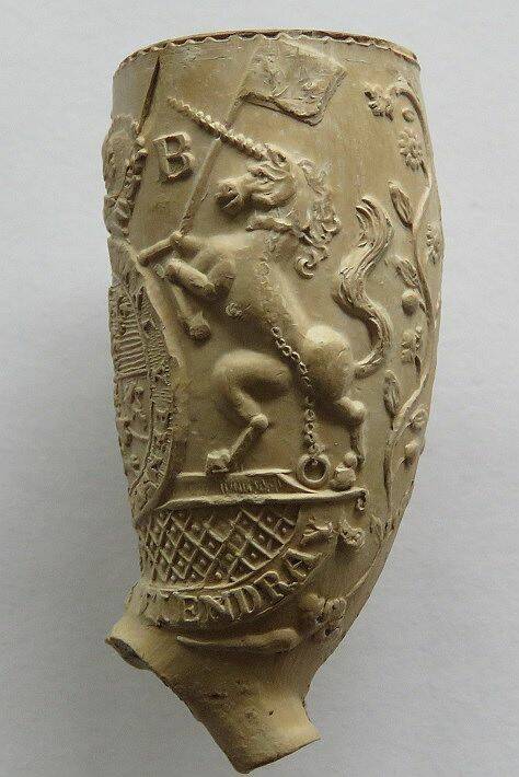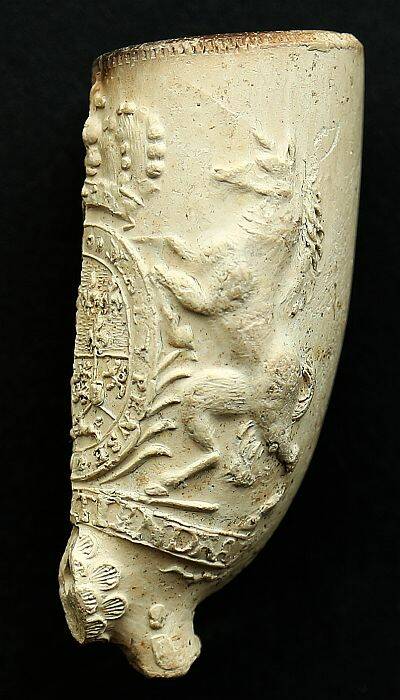 Kleipijpen met eenhoorns/leeuwen rond wapens 18e eeuw