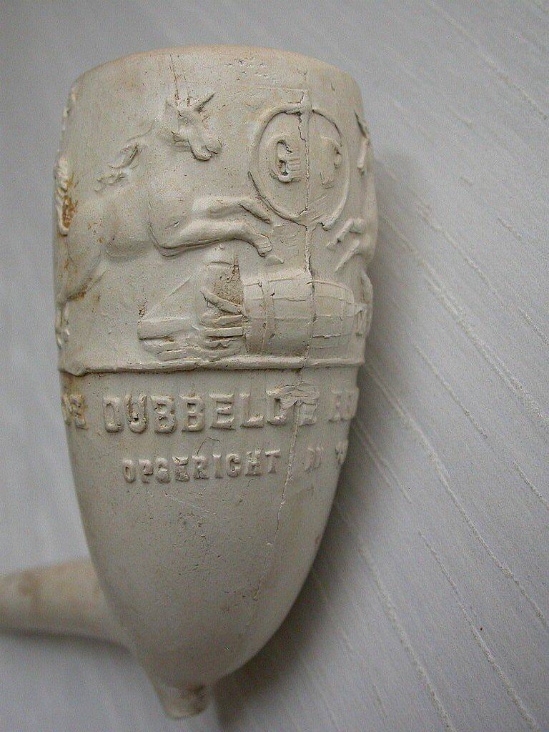 Kleipijp (part verz) met dubbele Eenhoorns met de tekst DE DUBBELE EENHOORN OPGERICHT 1817.