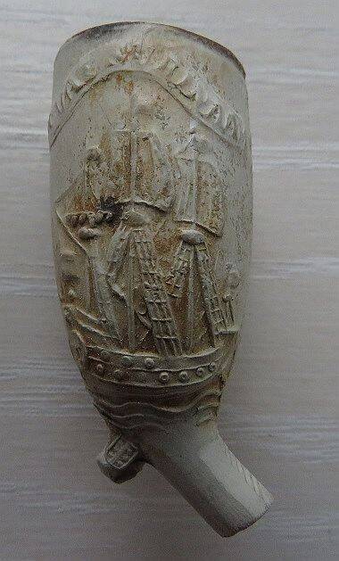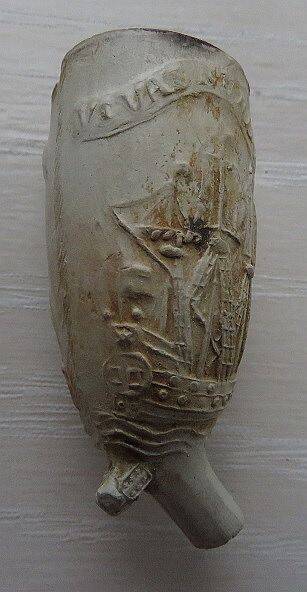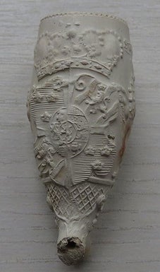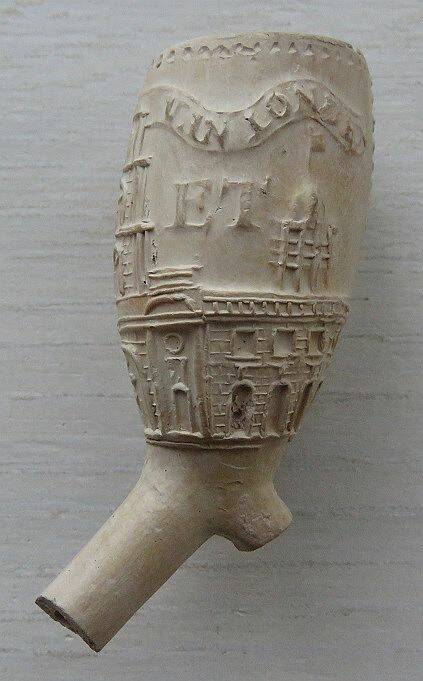 Deze kleipijp is wellicht vervaardigd als exportpijp voor het Verenigd Koninkrijk Groot Brittanië