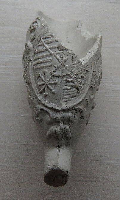 Kleipijp 2e helft 18e eeuw (DsPR1FM008) met aan weerszijden van een wapenschild