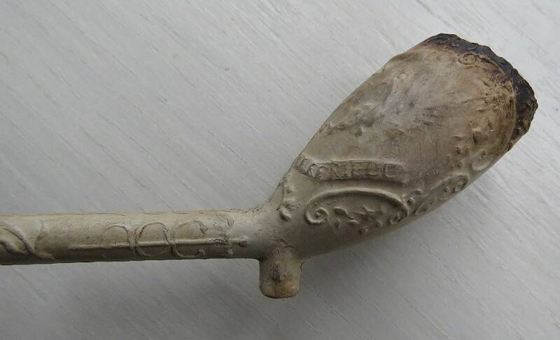 Pijpenmaker: Maarten Monk of zijn weduwe of Cornelis Prince 1770-1830. Vindplaats: poldergebied bij Reeuwijk.