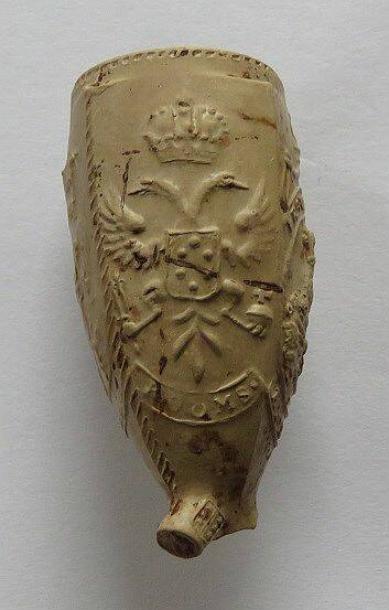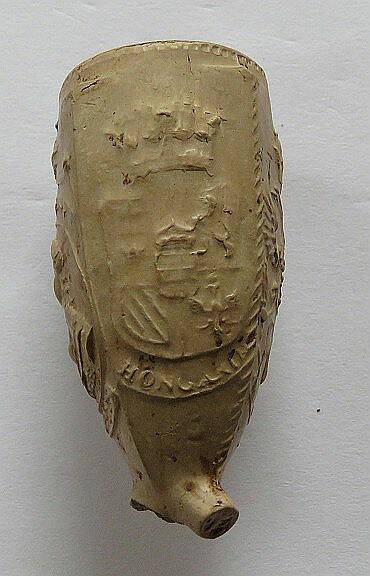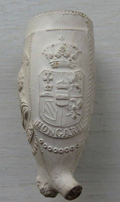 Kleipijp (HB29) met Portretten van Keizer Fransicus / Keizerin Maria Theresia. Wapen van Oostenrijk ROOMS / Wapen van Hongarije HONGARIE.