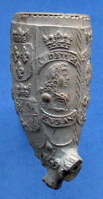 het Franse koningshuis. Als hielmerk de gekroonde 46. Pijpenmaker: Jan van Leeuwen. 18e eeuw.