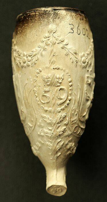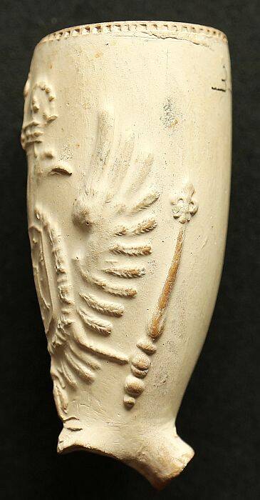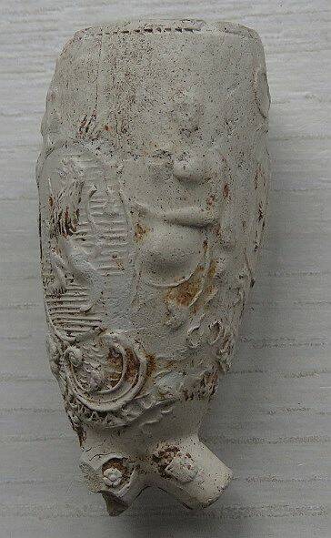 Opmerking: Voorstelling mogelijk een probeersel van de graveur van de pijpenmal. Een beter geslaagde pijp met een vergelijkbare voorstelling zie je hieronder.
