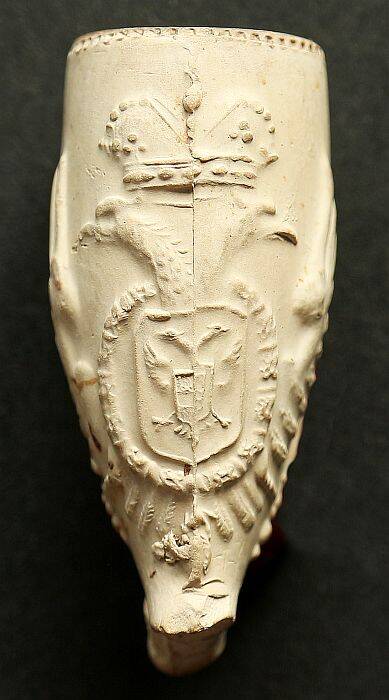 Kleipijp (PB) Dubbelkoppige adelaar gekroond met op de borst een wapenschild met dubbelkoppige adelaar.