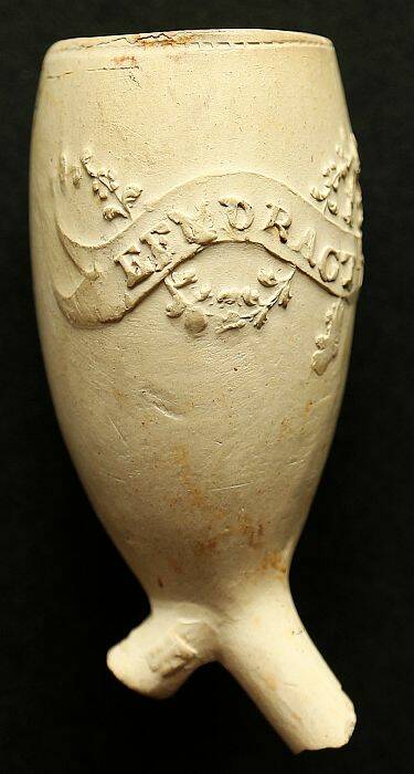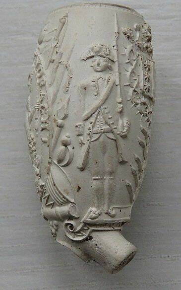 Kleipijp (FM) met Twee soldaten met Hollandse maagd met vrijheidshoed en Hollandse leeuw.