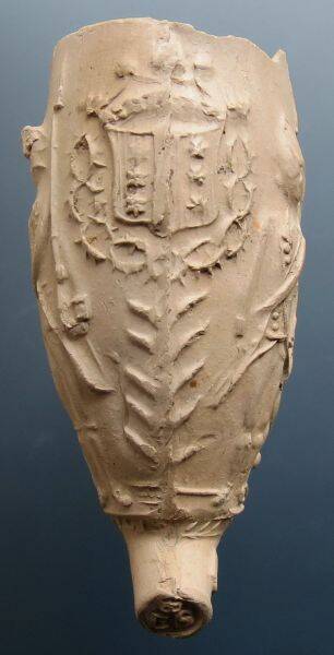 Kleipijp (Ds2PRFM08) Door twee schildhouders vastgehouden wapenschild met de wapens van de zeven provinciën.