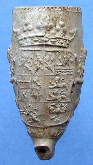 Kleipijp (Ds2PRFM09) Door twee schildhouders vastgehouden wapenschild met de wapens van de zeven provinciën.