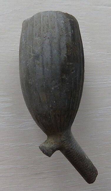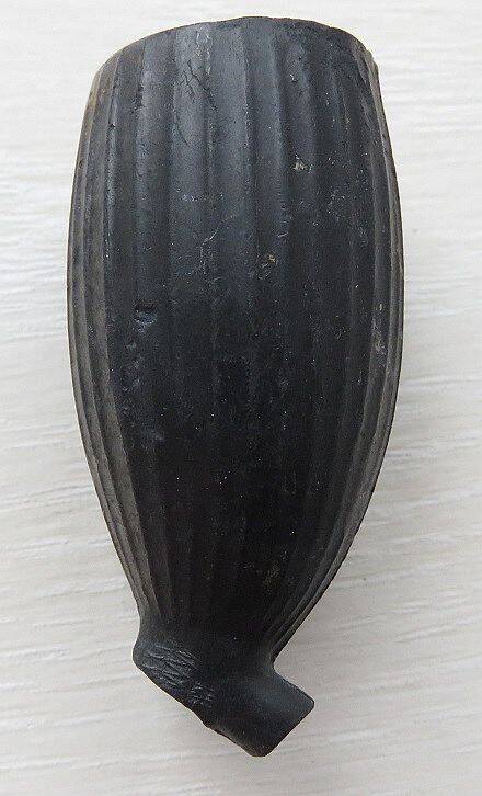 Kleipijp (Lade17FM1695) Ovoide in zwarte uitvoering met ribbelrijen. Gouda. 1841-1885. Hielmerk: 65 gekroond.