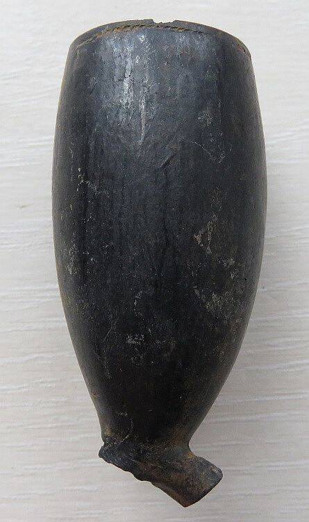 Kleipijp (Lade25FM40) Ovoide groot model in zwarte uitvoering. Hoogte 6,5 cm. Gouda. 1885-1900.