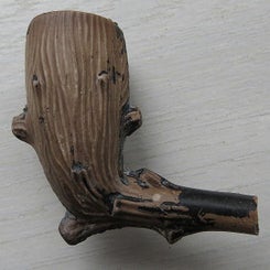 Kleipijp (Lade21FM) Boomstructuur met knoesten. Op de steel in bandstempel Goedewaagen Gouda. Ca. 1900. Pijpenmaker: P. Goedewaagen & Zn