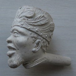 Kleipijp (lade21FM1700) Figuraal Sigarenpijp. Gezichtspijp Man met baard. Gouda. 1880-1920. Pijpenfabriek: P. Goedewaagen & Zoon.
