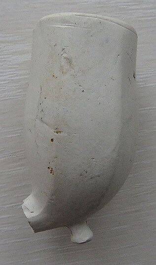 Kleipijp(lade18FM1241) type sigaretten/sigaarpijpje met een hand die een drinkbeker vasthoudt. Eind 19e eeuw.