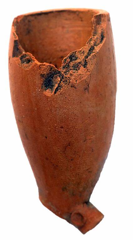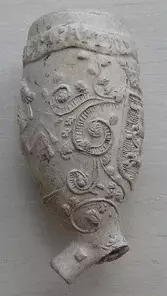 Kleipijp (Archeologisch depot Gouda Project 310, Doos 313 ) (fotografie: André Bomhof)) Ovoide onbewerkt.
