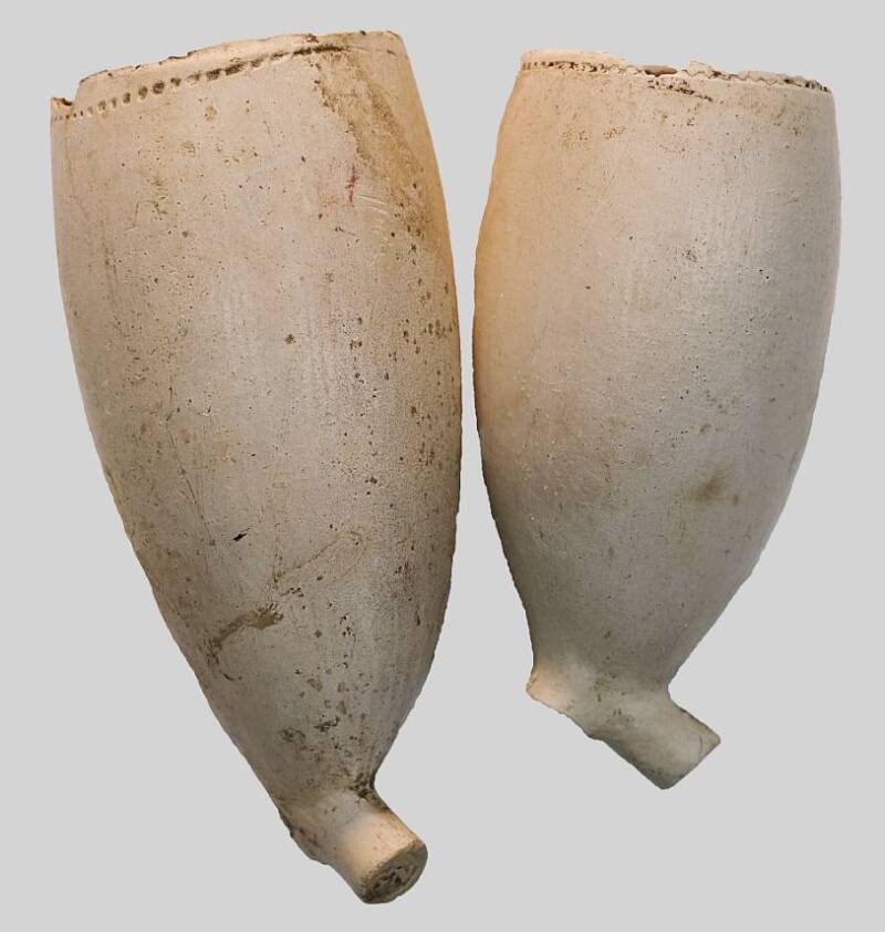 Kleipijp (Archeologisch depot Gouda Project 310, Doos 313 ) (fotografie: André Bomhof)) Ovoide groot en klein onbewerkt.