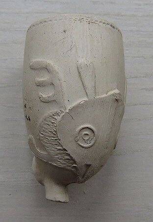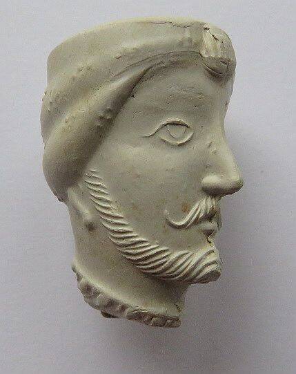 Kleipijp (part verz AdeB) figuraal pijp een gezichtje. Gouda. 2e helft 19e eeuw. Merk: geen