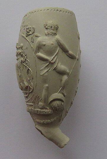 Kleipijp (Lade20FM21) Figuraal met (Griekse) Goddelijk figuur. Gouda. 2e helft 19e eeuw. Merk: geen