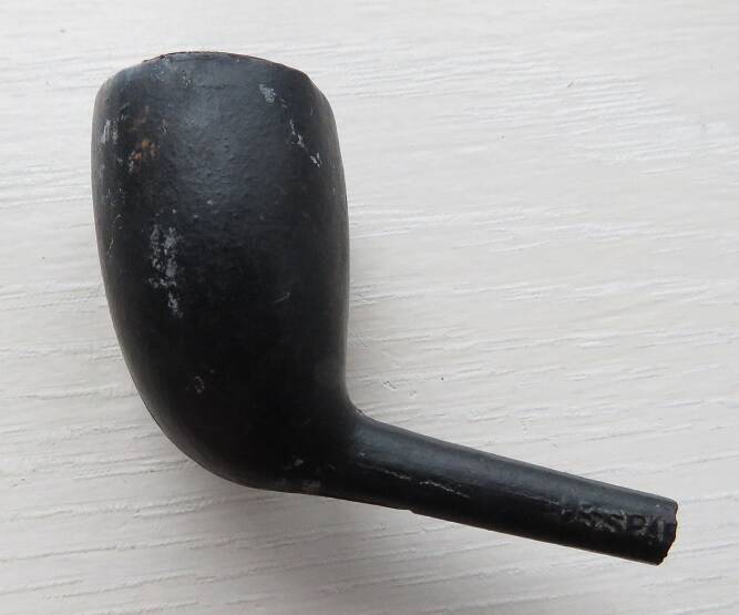 2e helft 19e eeuw. Pijpenmaker: Sparnaay? Vindplaats: Gouda/polder Achterwillens
