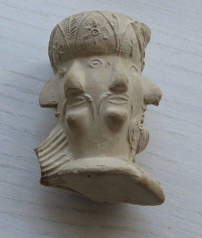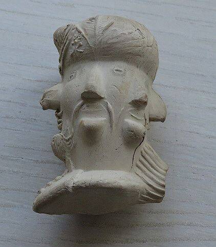 Kleipijp (Lade20FM988) Figuraal met man met rondom 6 gezichten. Gouda. 2e helft 19e eeuw. Merk: geen
