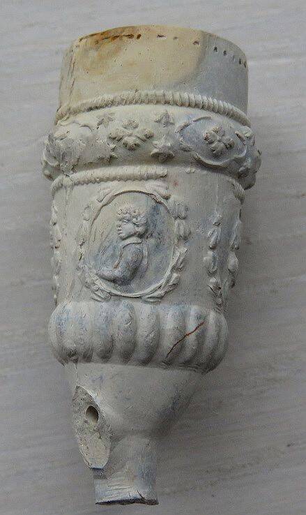 Kleipijp (Ds21FM014) Ovoidepijp met rondom medaillons met Prins Willem II te paard, Baron Chasse en J.C.J. van Speyk.