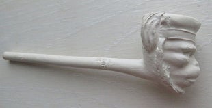 Kleipijp (Lade20FM24) figuraal met de voorstelling van een manspersoon. 2e helft 20e eeuw.