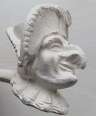Gave kleipijp (Lade33FM38) figuraal met de voorstelling van Clown met haakneus. Nederland. Pijpenmaker: Trumm-Bergmans Weert
