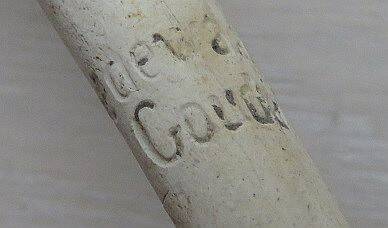 Kleipijp (Ds22FMPR) Rondbodem met op de steel de naam van de pijpenmaker: P. van der Want Gouda. Ca. 1880-1900.