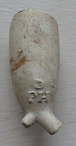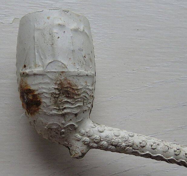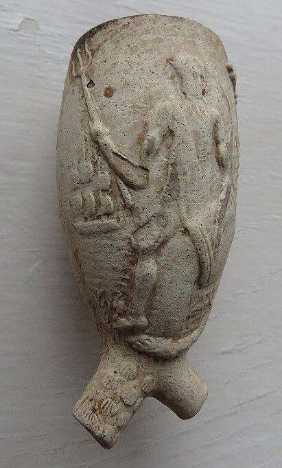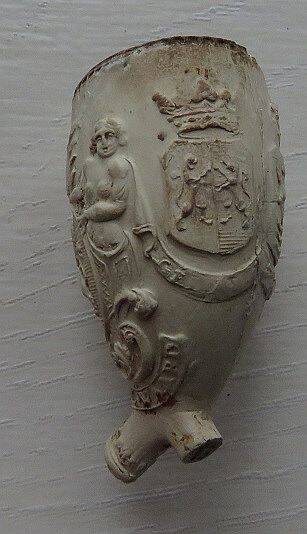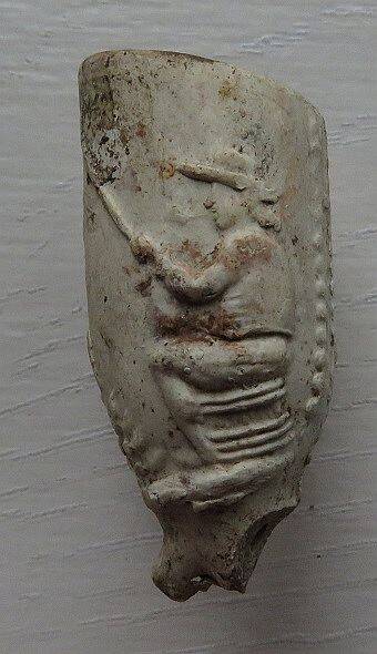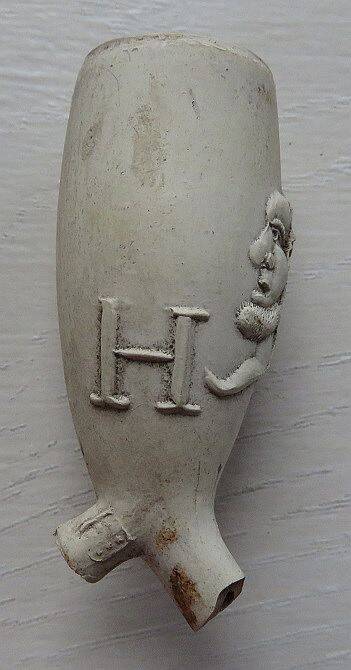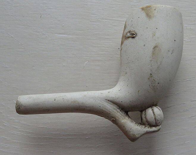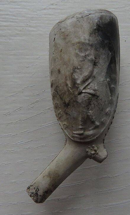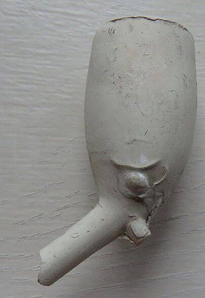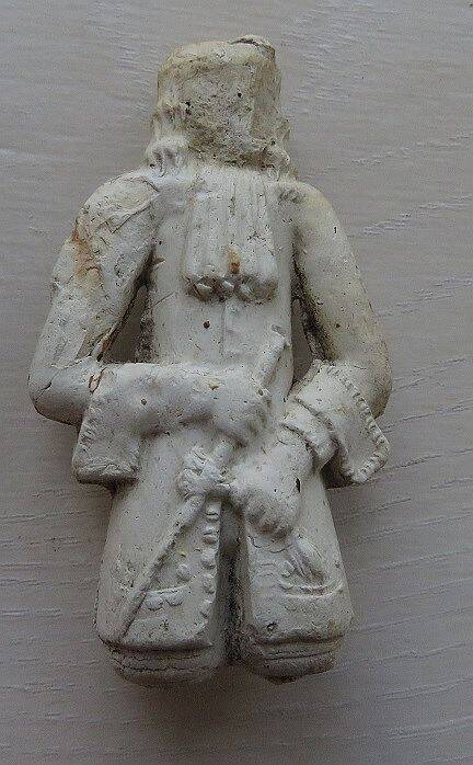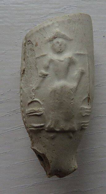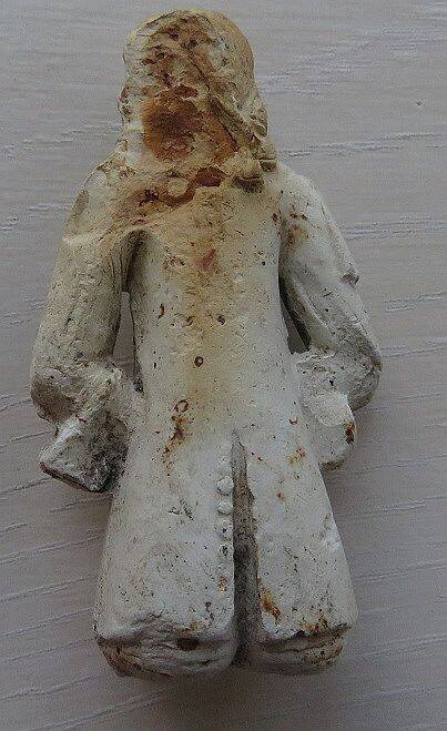 Hoogte beeldje incompleet 7 cm. Compleet: geschat ca. 12/13 cm. Gouda? Was een nevenproduct van een pijpenmaker.