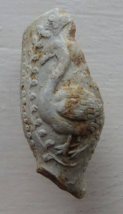 Kleipijp (Lade17FM30) Parelnaadtype met de voorstelling aan 2 kanten van een zwaan. Ca. 1700/1730. Gouda. Pijpenmaker: onbekend