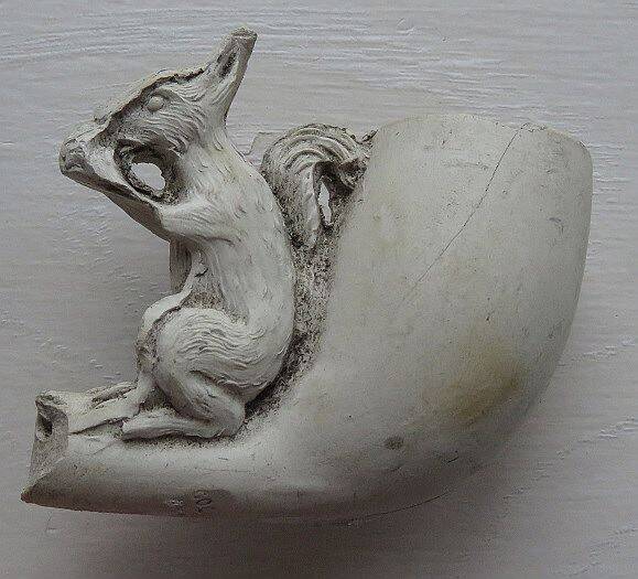 Kleipijp (lade17FM41) met op de pijp geplaatst een eekhoorn. Eind 19e eeuw. Pijpenmaker: P. Goedewaagen & Zoon.