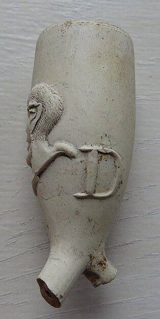 Hoogte beeldje: Ca. 7 cm. Gouda? Was een nevenproduct van een pijpenmaker.