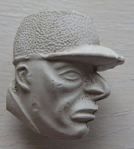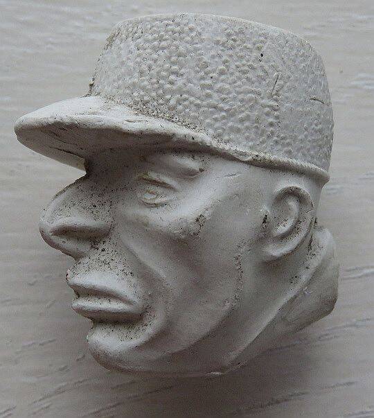 Kleipijp (Lade17FM51)Figuraal met het gezicht van een man met pet op. Gouda. Ca. 1900. Merk: geen.