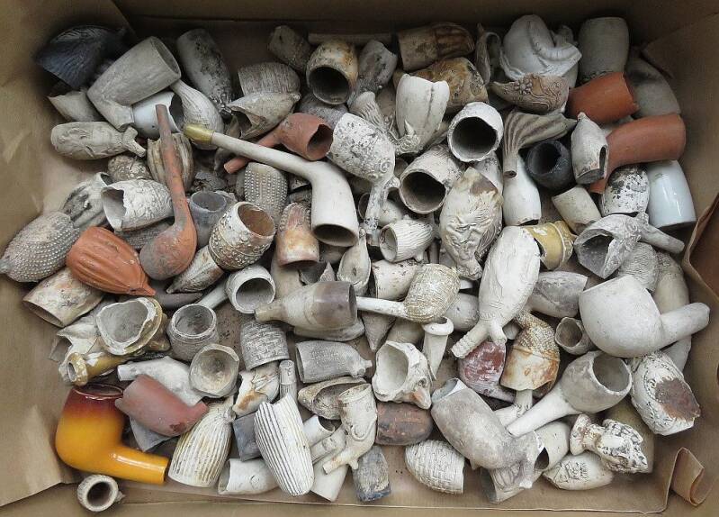 Verzameling kleipijpen op een tuinderij uit het zgn toemaakdek