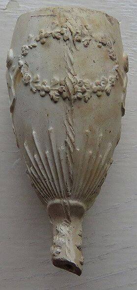 Kleipijp (Lade17FM15) Barokpijpje omgeven door acanthusbladen. Datering: 1725-1735. Gouda. Pijpenmaker: onbekend.