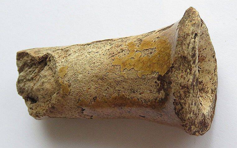 Handvat van aardewerk steelpan. Gele glazuurresten. 18e/19e eeuw