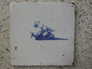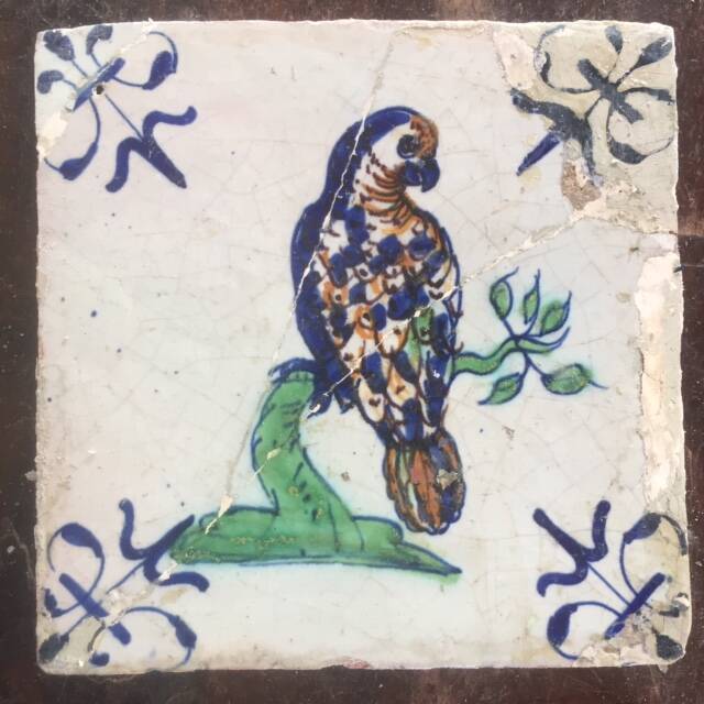 De tegel met een papegaai heeft op de achterzijde een