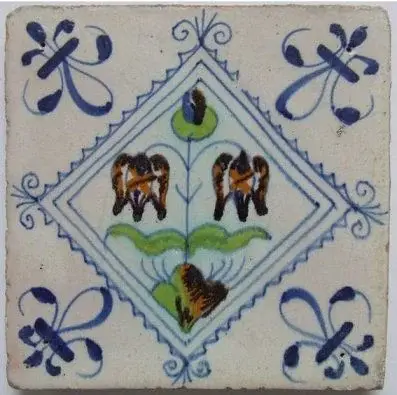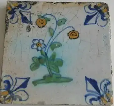 Polychrome bloemen per soort, in Gouda vervaardigd, 17e eeuw