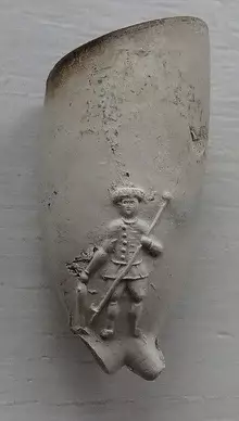 Ovoide. Hielmerk: Schutter (soldaat met musket en richtstok) Gouda.
