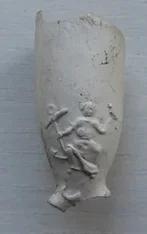 Kleipijp (Ds102FM22) Ovoide. Hielmerk: Bacchus op 't Vat. Gouda. Ca. 1750-1780.