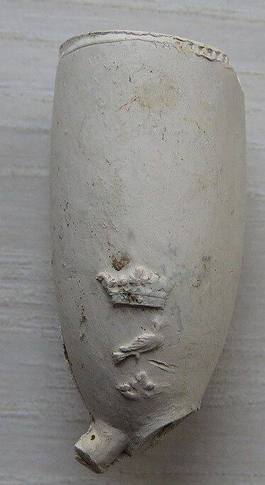 Kleipijp (lade7FM1762) Zijmerk. Duif gekroond.