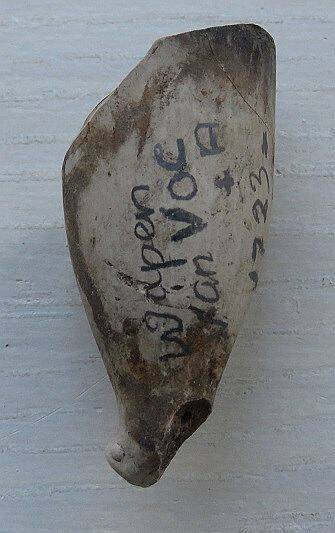 Kleipijp (lade5FM030). Ovoidepijp. Hielmerk: VOC monogram. Gouda.