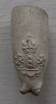 Kleipijp (lade5FM066). Dubbelconisch. Hielmerk: Stadswapen van Amsterdam. Gouda. ±1690.