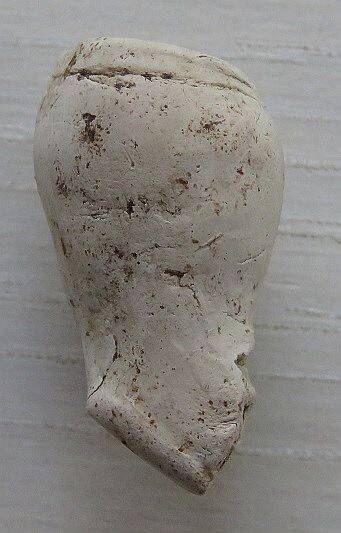 Kleipijpje (lade4FM63) van de 1e generatie met een druppelvormig hielmerk met het gezicht van een