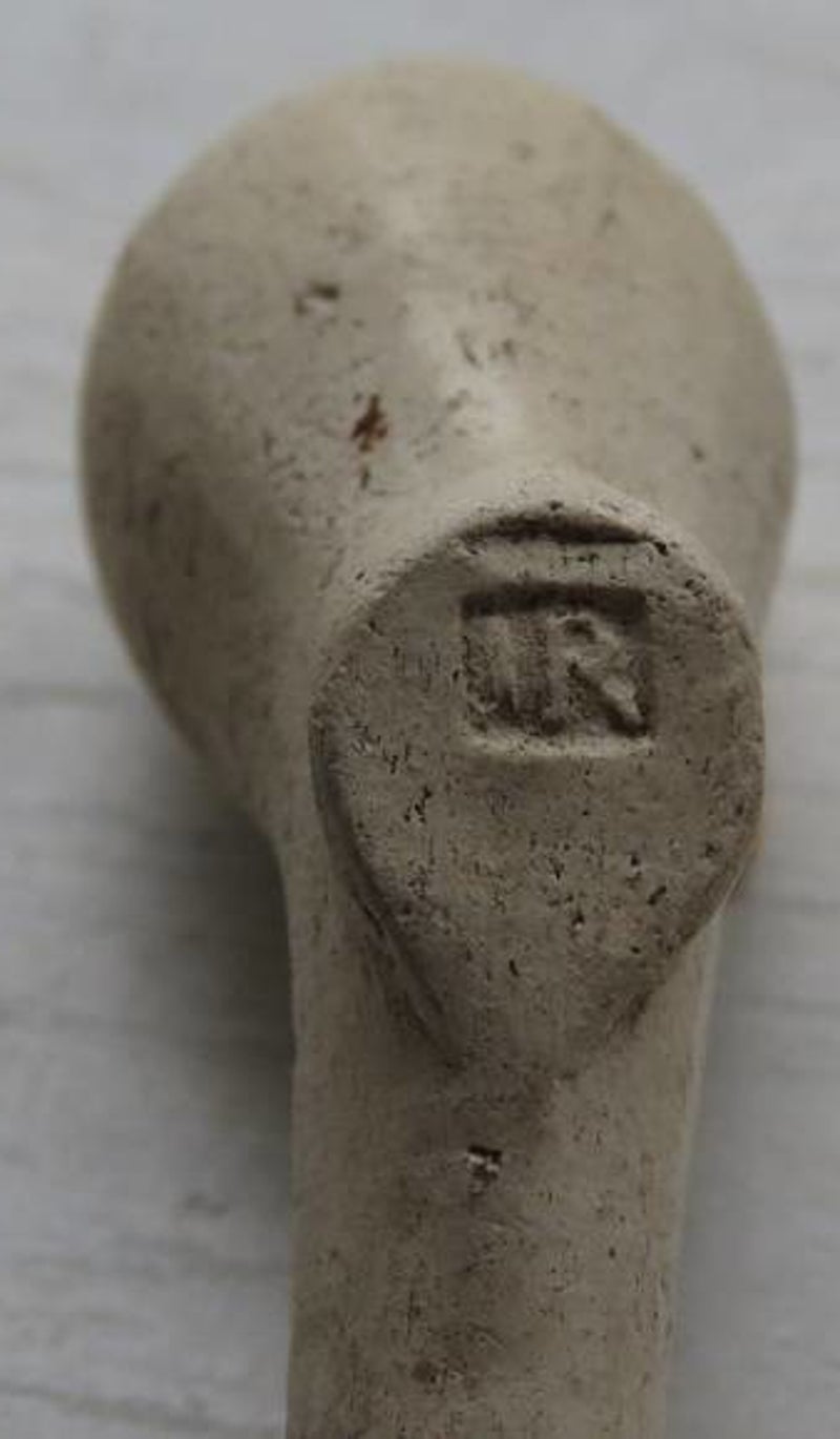 Kleipijpje (lade1FM673) van de 1e generatie met een vierkant hielmerkje met de letters IR.