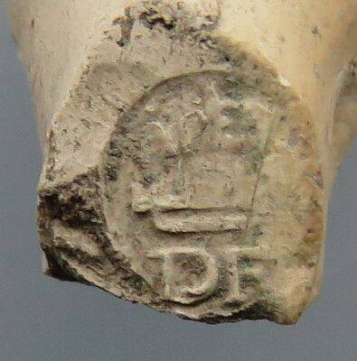 Kleipijp (AK) met als hielmerkje de letters DF onder een kroon. Rotterdam. Pijpenmaker: Daniel Fransz. Huys