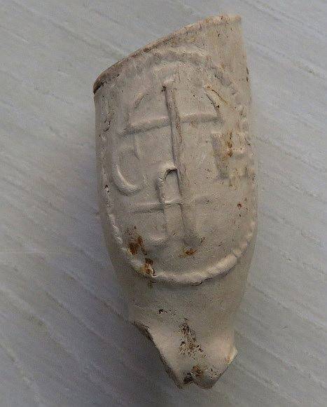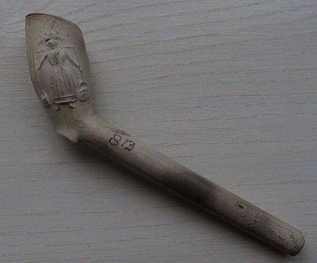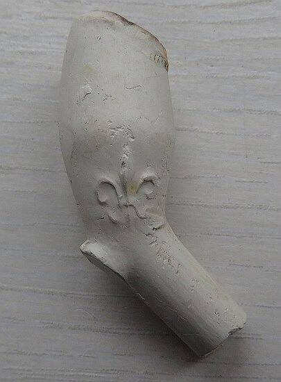 Kleipijp (Lade3FMgeennummer). met aan weerskanten Franse lelies. Omstreeks 1670-1700.