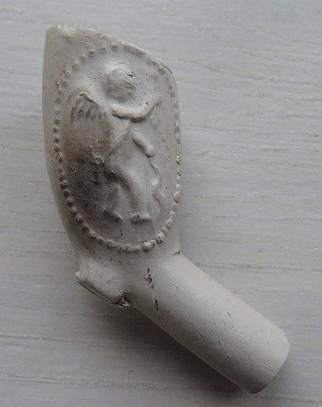 Kleipijp (ds29FM583), geen parelnaadpijp, met aan twee kanten een engel. Maastrichtse produktie.